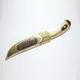 Клинок, изготовленный из высоколегированной стали, обработан с исключительной точностью, гарантируя ему долговечность и острый режущий край. Рукоять, выполненная из благородного дерева, отполирована до зеркального блеска, а отделка из латуни придает ножу неповторимый блеск.